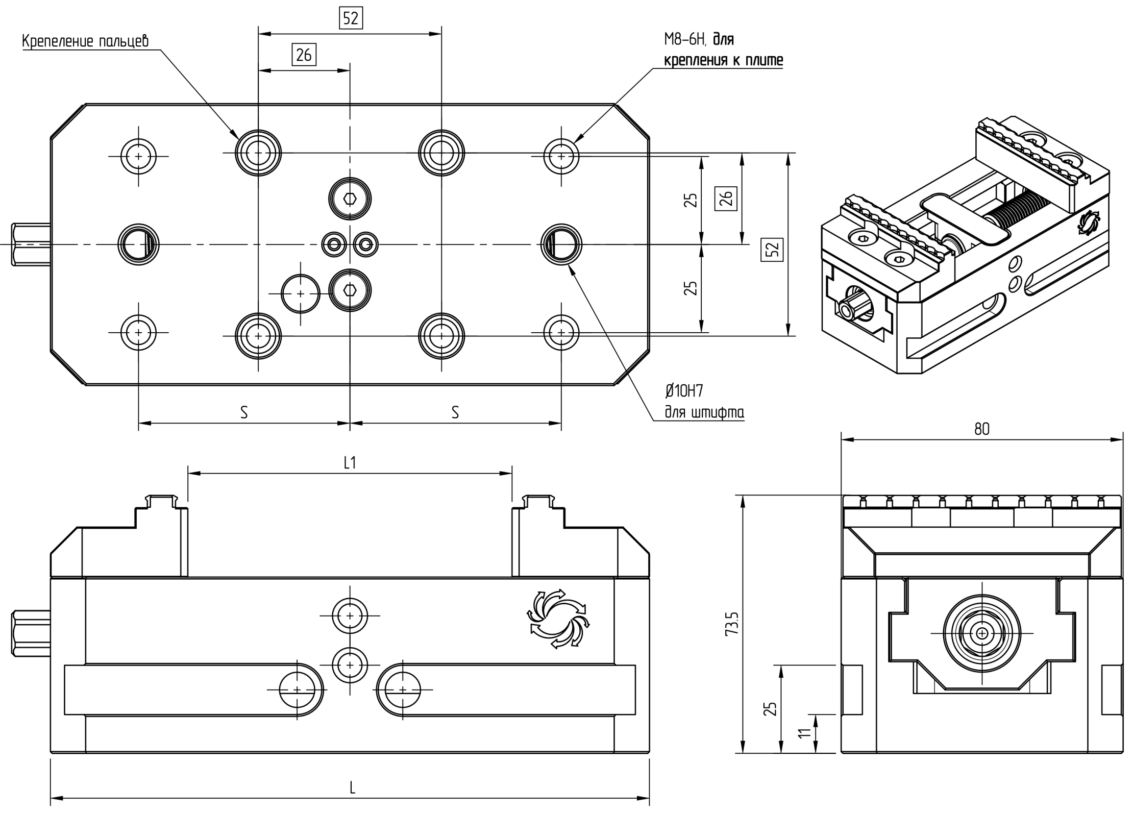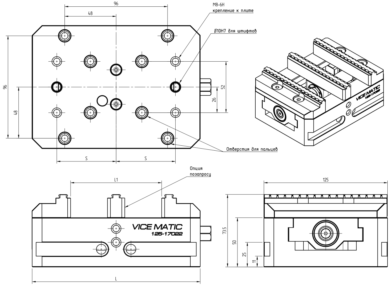 Серия предназначена для установки, на стол станка, установки в переходные блоки, башни, призмы и плиты, имеют различные зажимные губки, ширина 125 мм.