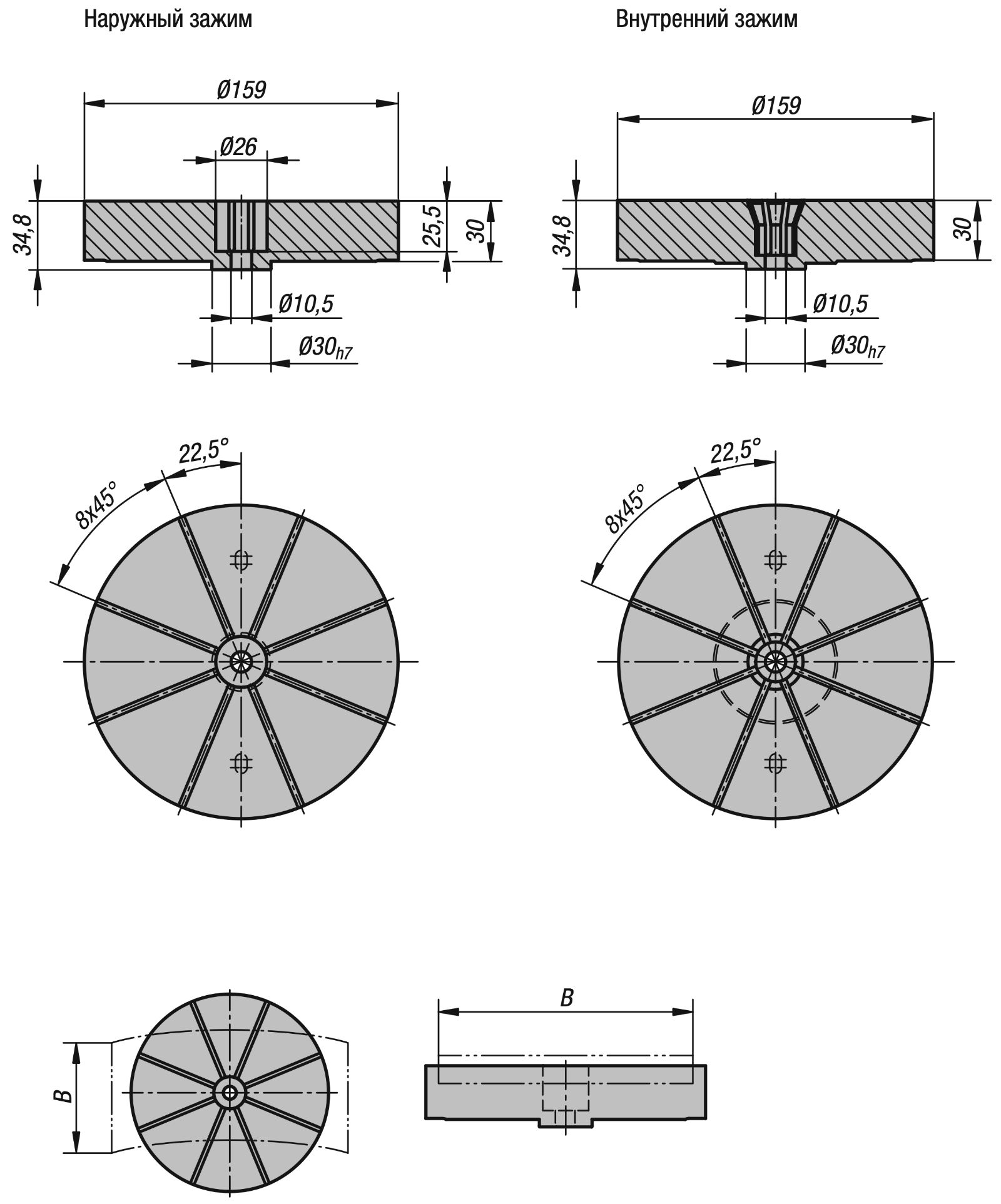 | 116030 | Наружный зажим | Ø 30 - Ø 140 | 1-20 | 25 |