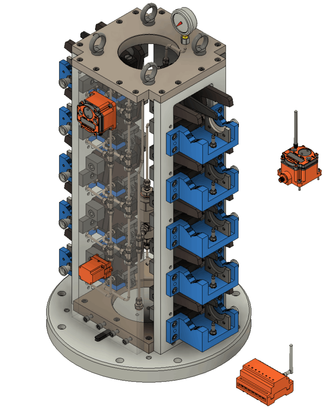 Конструкция проектируется под заказчика и зачастую имеет модульную конструкцию, позволяющую обрабатывать схожие детали в одном установочном месте, либо сменой базового модуля. Могут быть изготовлены для любого типа деталей практически без ограничений.