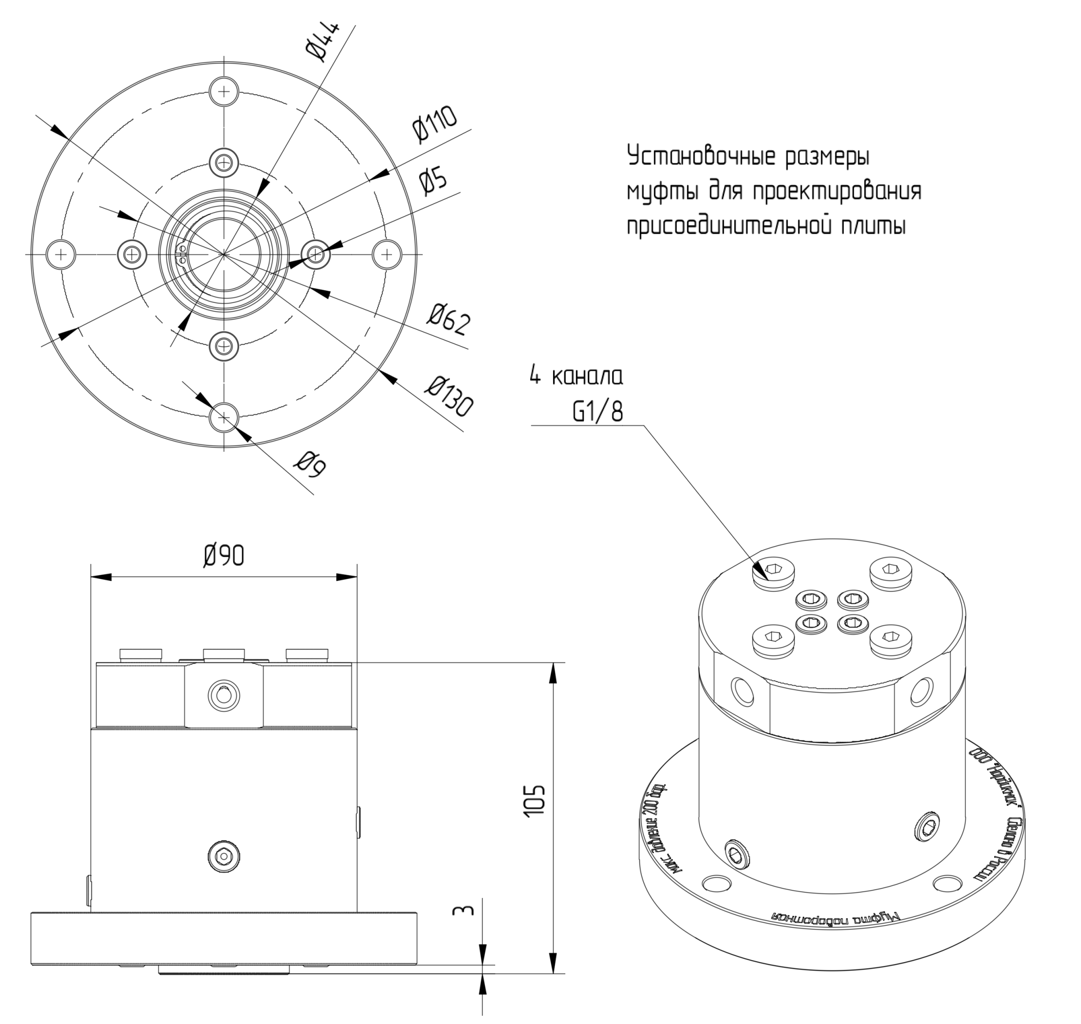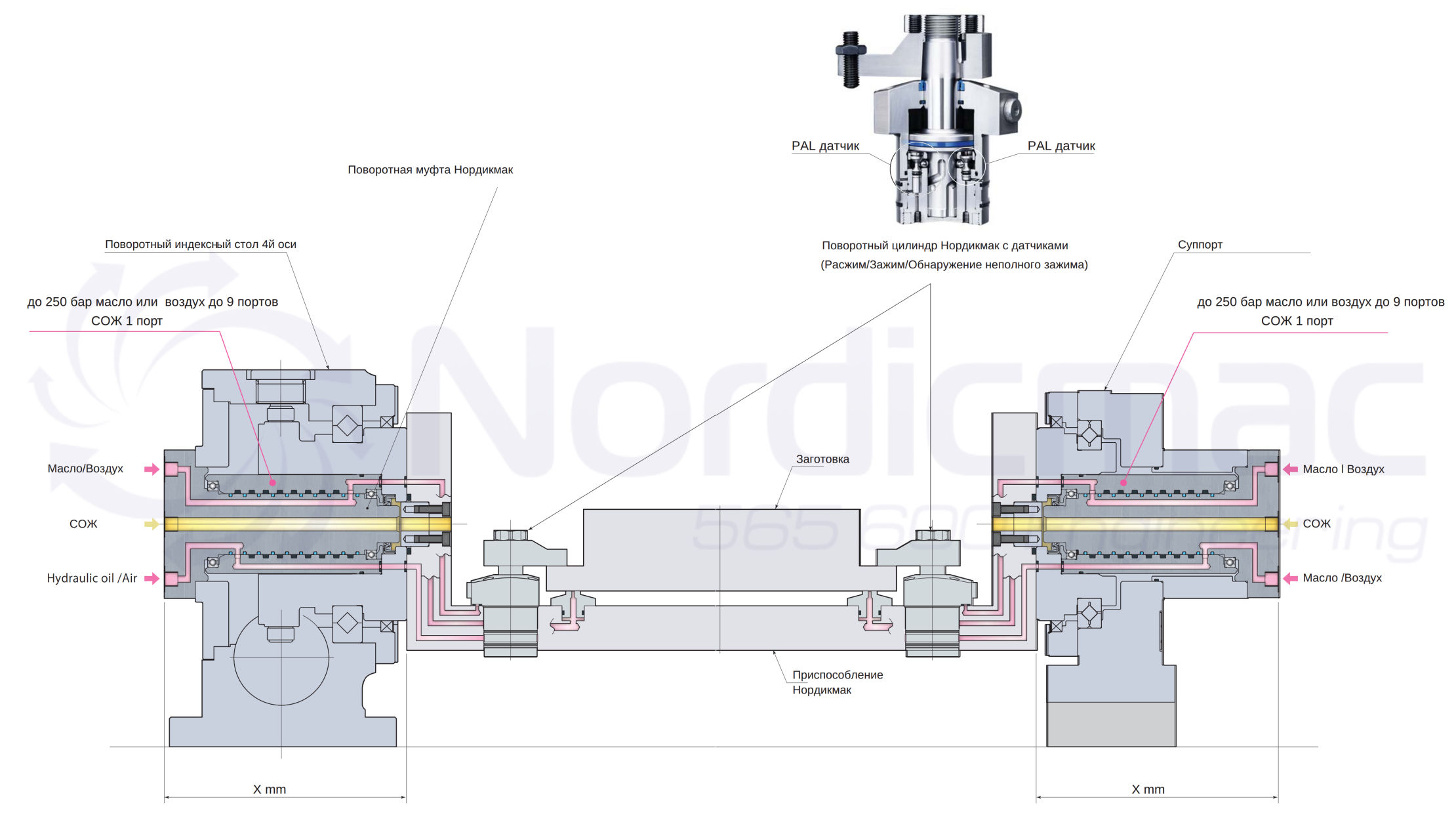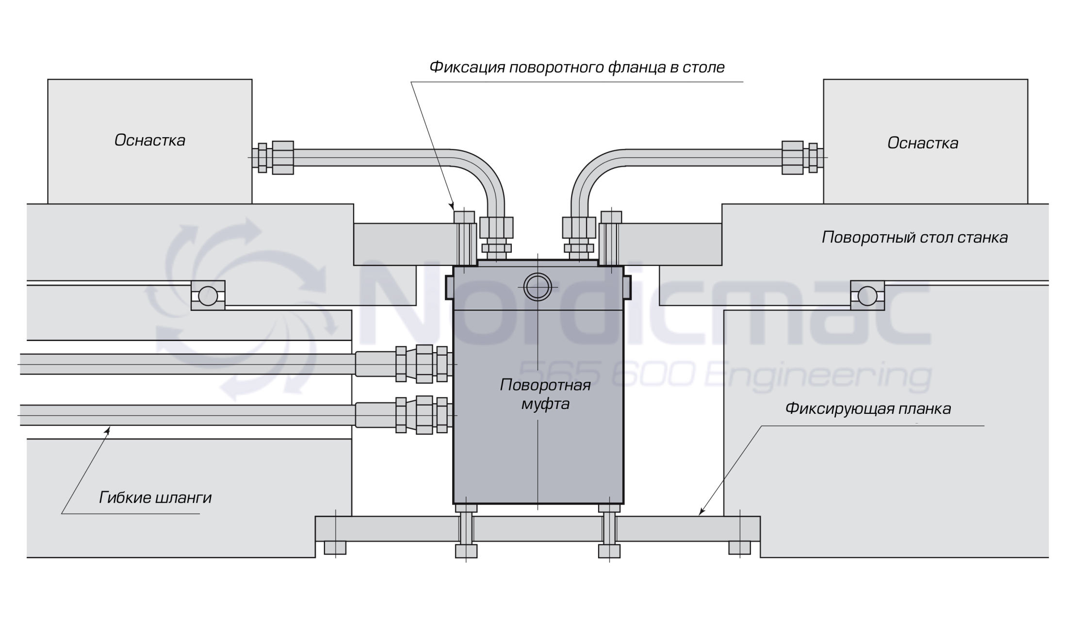 Поворотные муфты имеют рабочее давление до 350 бар что дает возможность уверенно устанавливать их в любые станки, так как практически все станки имеют рабочее давление от зажимных насосов 250 или 70 бар.