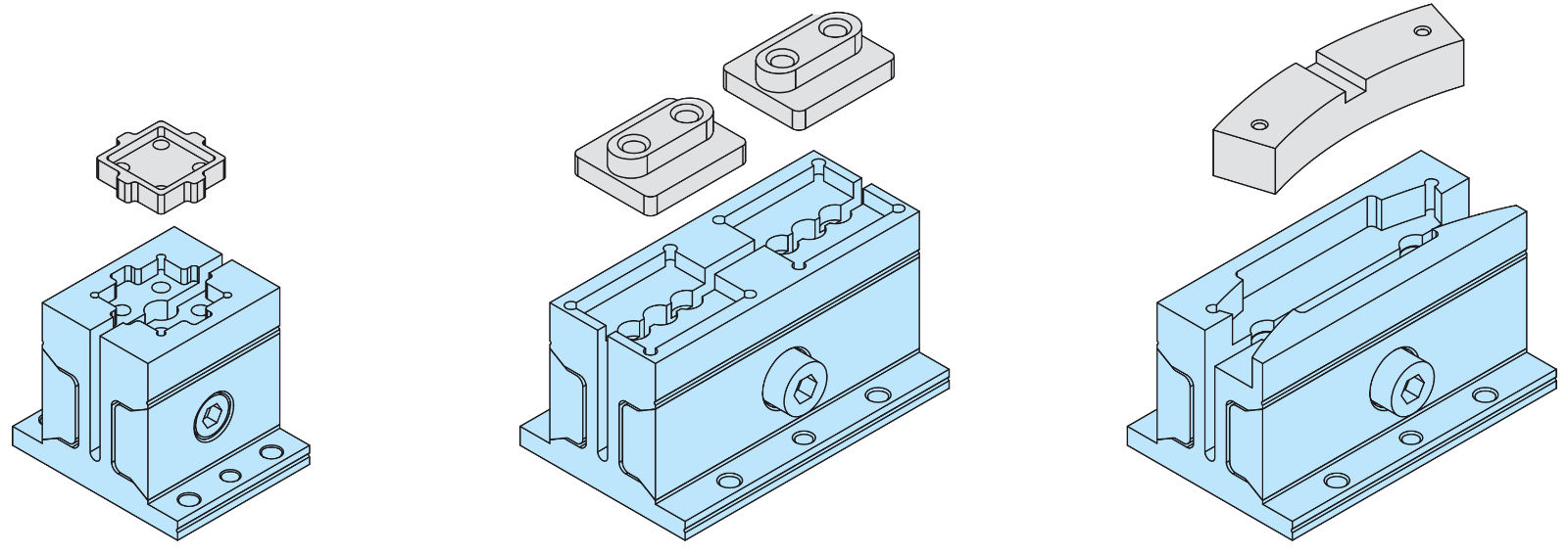 С помощью бокового зажимного винта приводится в действие зажимное устройство, в результате чего заготовка зажимается по периметру.