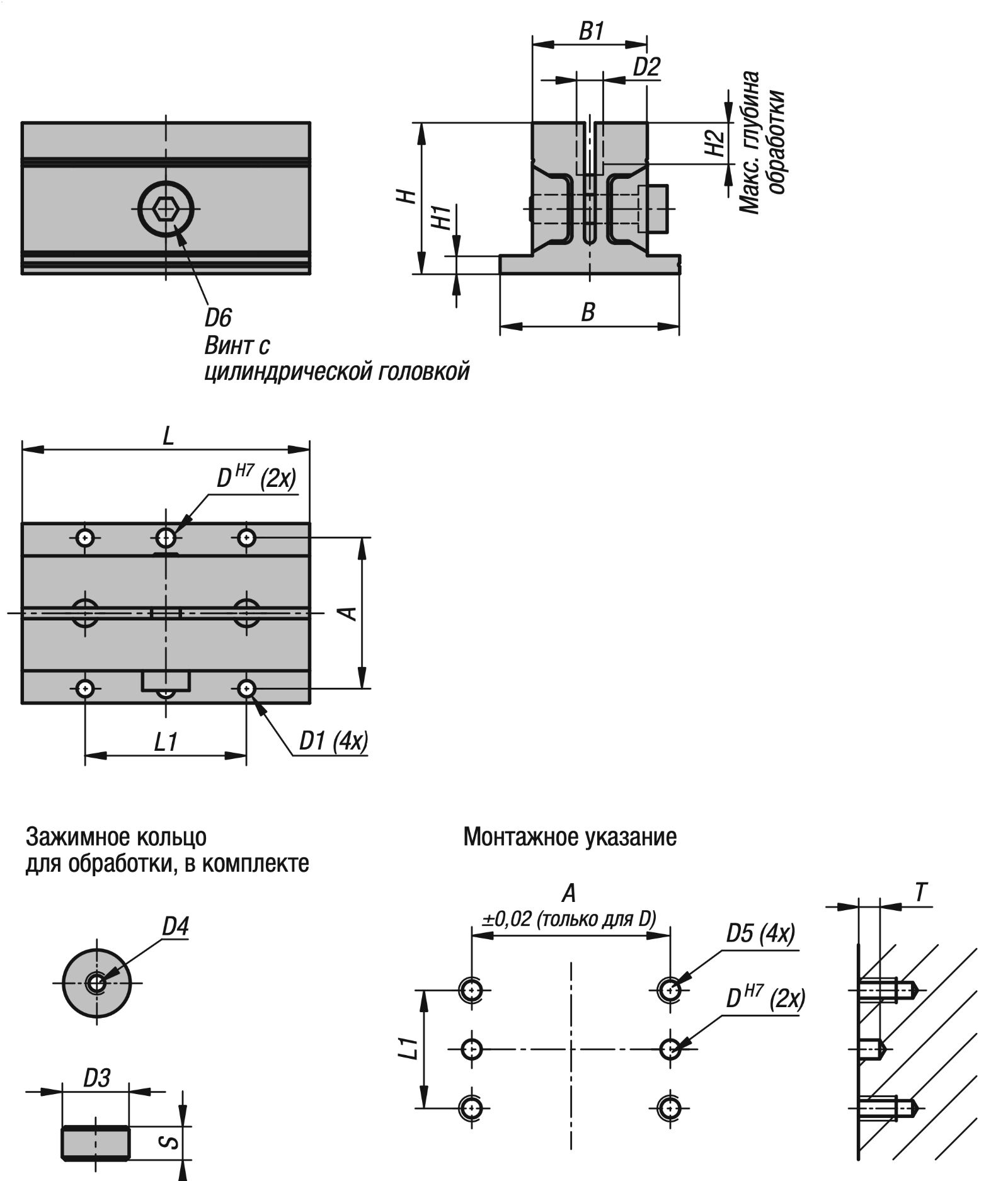 | Артикул | H2 | L | L1 | S | T | Зажимное усилие, H | Момент затяжки, Нм |